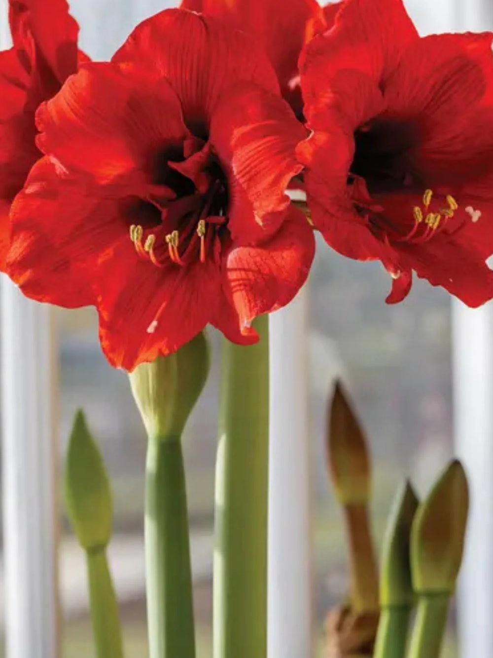 Bulbi Amaryllis Ferrari se remarcă prin flori roșii intense, mari și elegante, ce aduc un aer sofisticat și plin de energie oricărui decor interior.