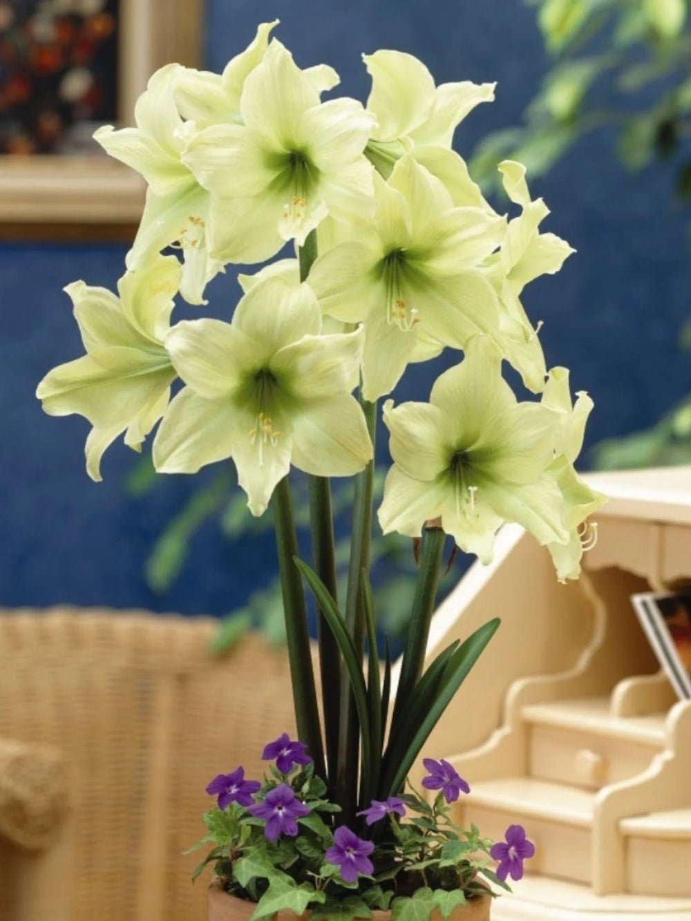 Plantează bulbii primăvara într-un ghiveci cu sol bine drenat, lăsând partea superioară a bulbului vizibilă. Amplasează-i într-un loc luminos, ferit de soarele direct, pentru o înflorire bogată.