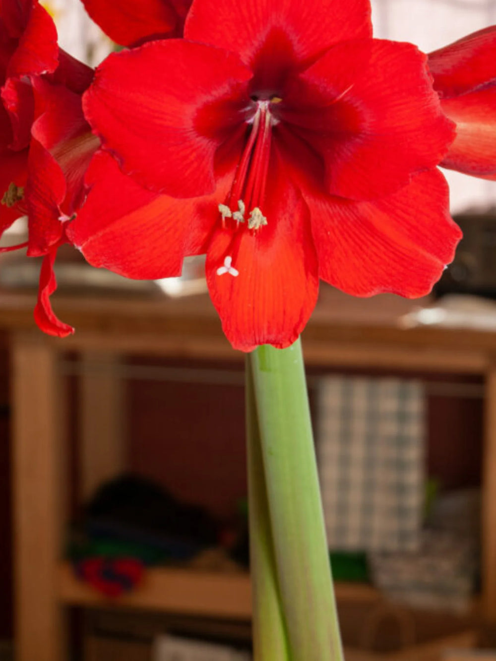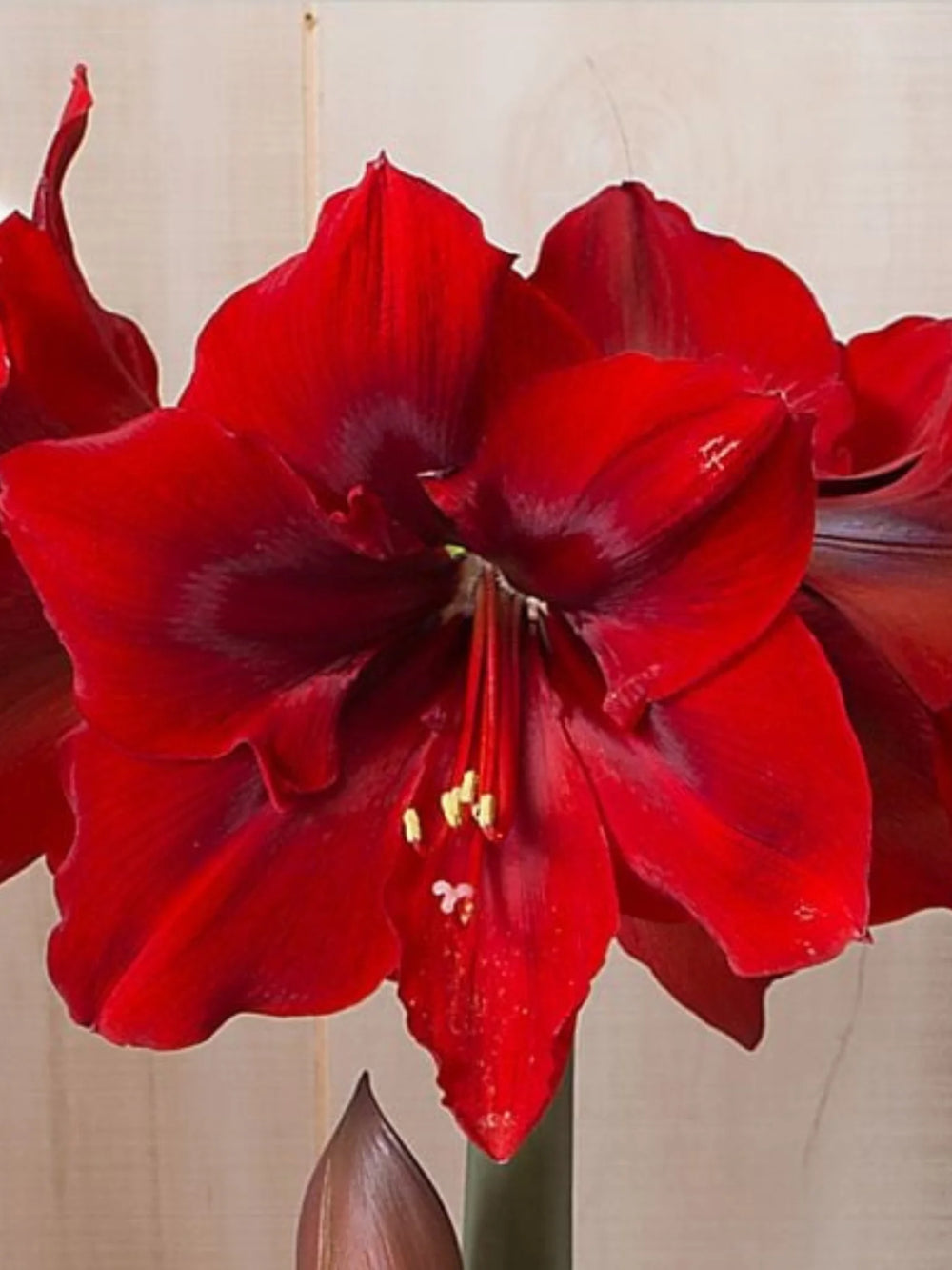 Bulbi Amaryllis Red Cream transformă orice spațiu într-un colț plin de culoare și rafinament.