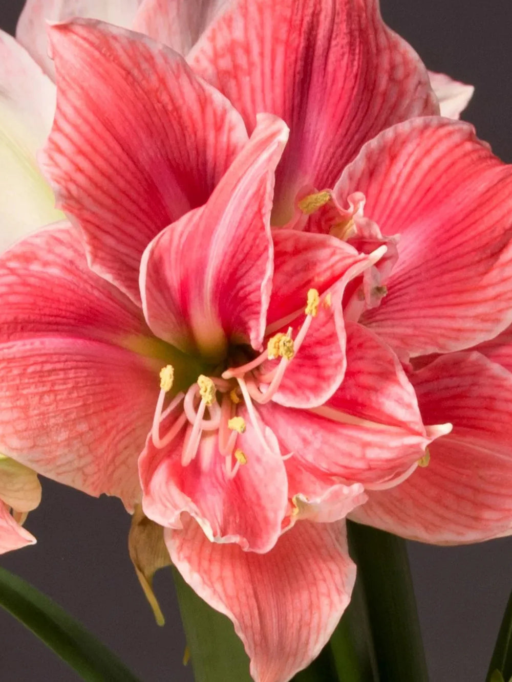 Bulbi Amaryllis Sweet Nymph oferă flori mari, bicolore, cu petale roz și albe, ce aduc delicatețe și rafinament în orice spațiu.