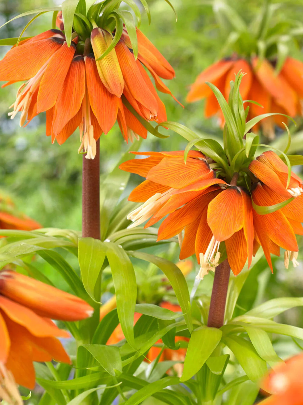 Bulbi Fritillaria Orange Beauty oferă un impact vizual impresionant prin florile mari, de un portocaliu intens, dispuse în formă de coroană inversată, susținute de tulpini înalte și drepte. Planta creează un efect exotic și luxuriant, fiind ideală pentru grădini ornamentale, borduri sau spații amenajate artistic.