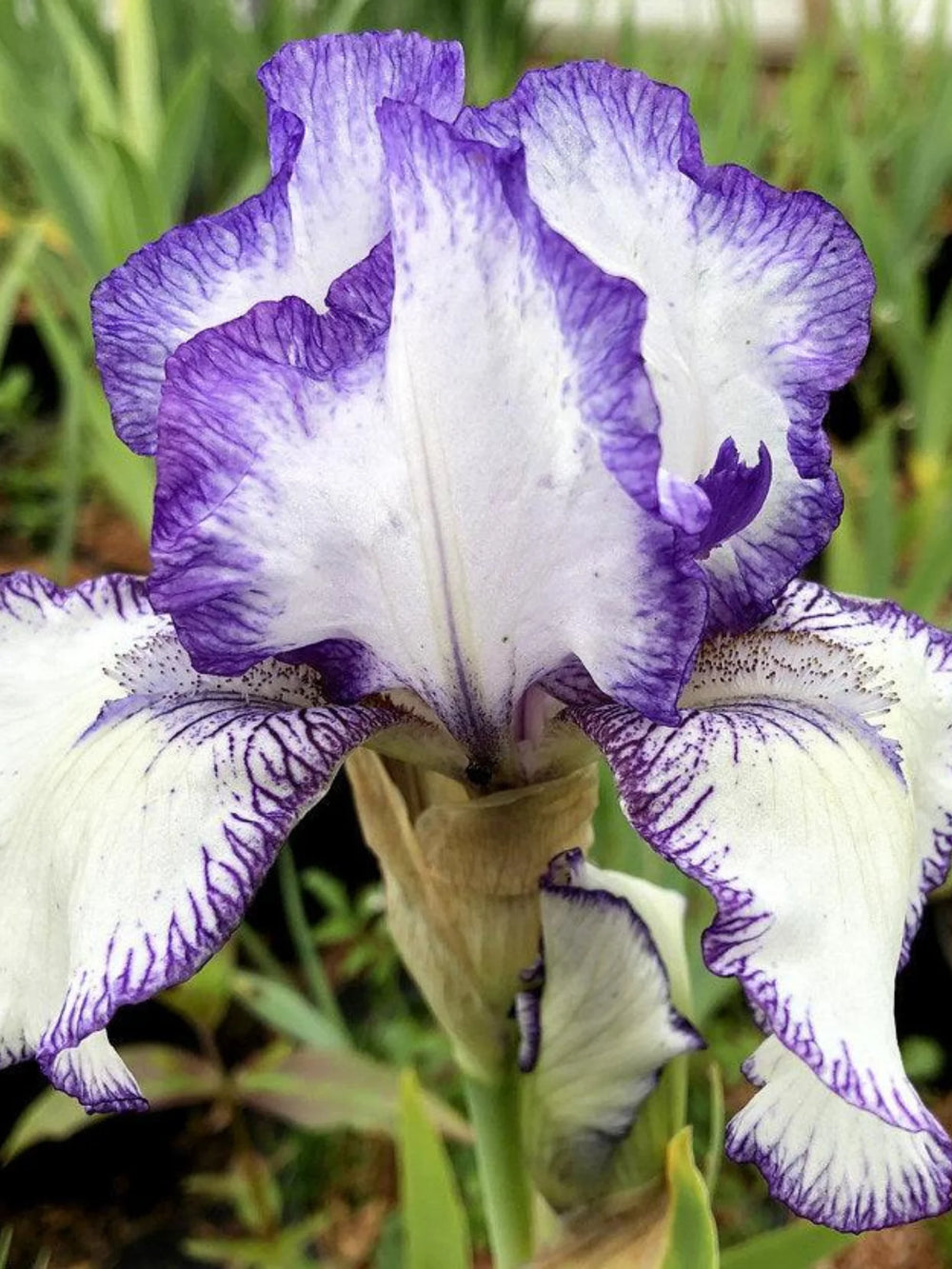 Bulbi Iris Germanica Bolt Print sunt alegerea perfectă pentru iubitorii de flori unice și spectaculoase. Acest soi se evidențiază prin petalele sale bicolore, cu contraste puternice de violet intens și alb strălucitor, ce creează un efect vizual deosebit în grădină. Eleganța și aspectul luxuriant fac ca acest iris să fie ideal atât pentru borduri, ronduri, cât și pentru aranjamente florale deosebite. Livrat la ghiveci, bulbul are un start sănătos, ceea ce asigură o prindere rapidă și o dezvoltare viguroasă.