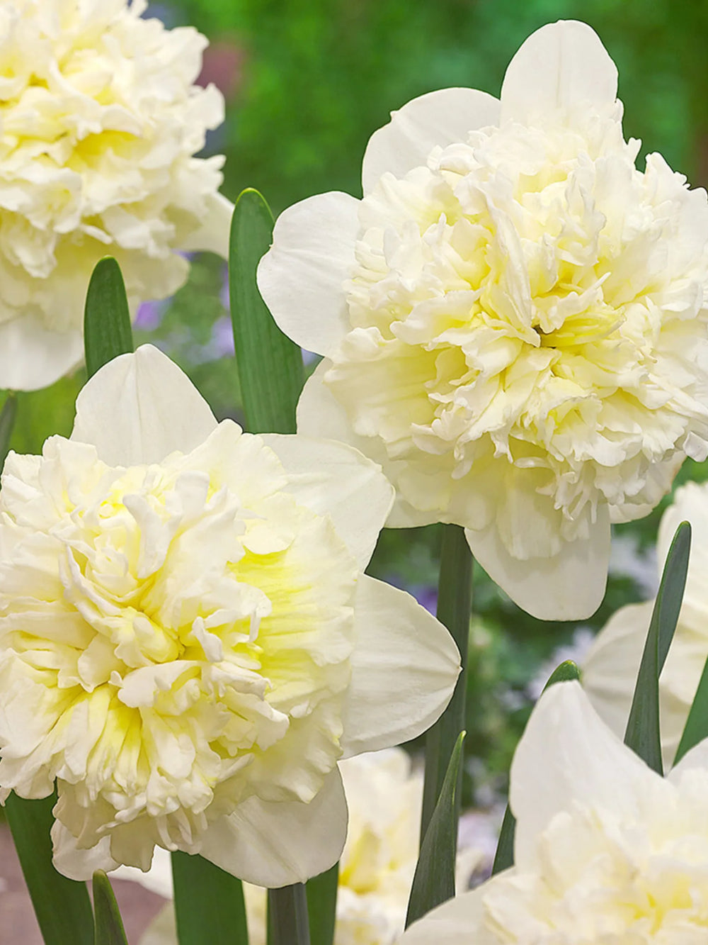 Bulbi narcise Ice King încântă prin florile albe-gălbui mari, elegante și duble, ideale pentru a adăuga un aer sofisticat și rafinat grădinii de primăvară.