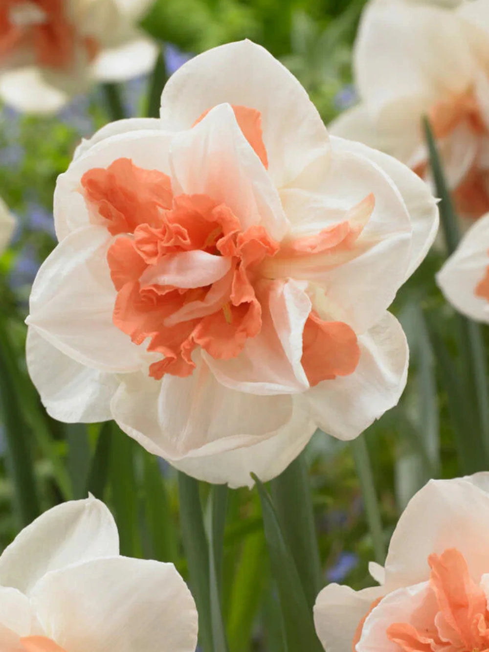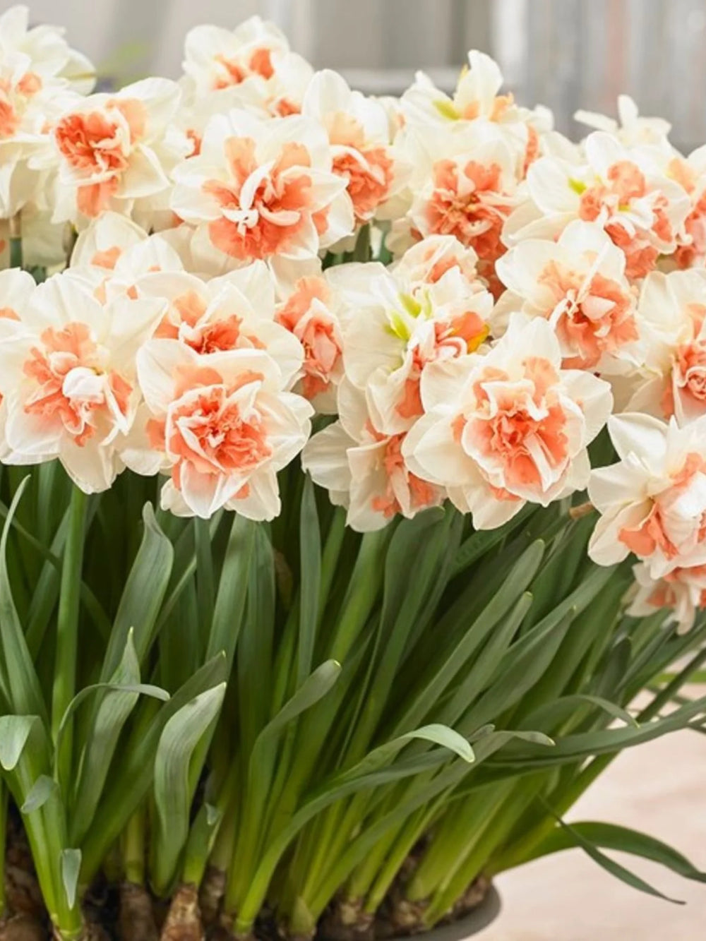 Bulbi narcise My Story impresionează prin florile albe-rozalii deschis duble, cu accente delicate de roz, aducând un aer romantic și rafinat în grădinile de primăvară.