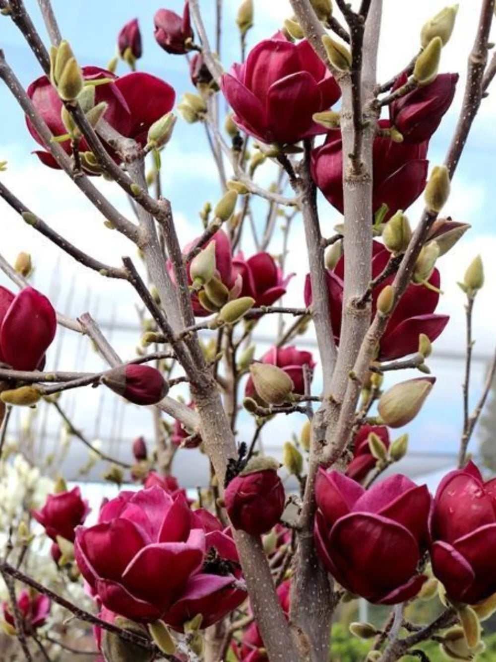 Magnolia Genie este una dintre cele mai spectaculoase plante ornamentale, apreciată pentru florile sale mari, în formă de lalea, de un roșu-purpuriu intens, care înfloresc abundent primăvara și uneori repetă înflorirea vara. Această magnolie adaugă un efect dramatic și elegant în orice grădină.