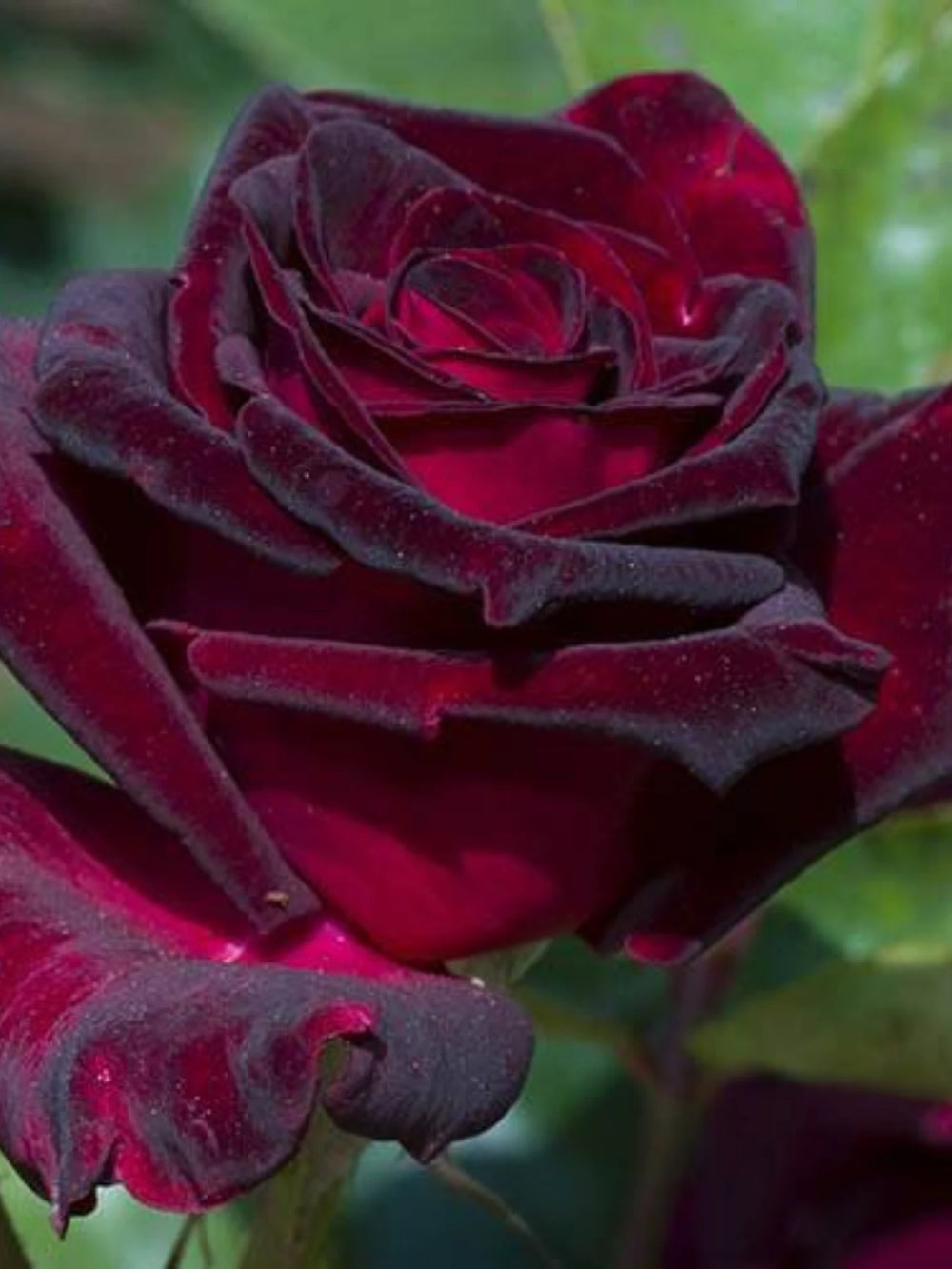 Trandafirul "Black Baccara" este o varietate unică și elegantă, cunoscută pentru florile sale de un roșu profund, aproape negru. Aceste flori au o formă bogată și plină, cu petale catifelate care adaugă un aspect dramatic. "Black Baccara" este apreciat nu doar pentru frumusețea sa, ci și pentru parfumul său intens, fiind adesea folosit în aranjamente florale sofisticate și buchete de nuntă.