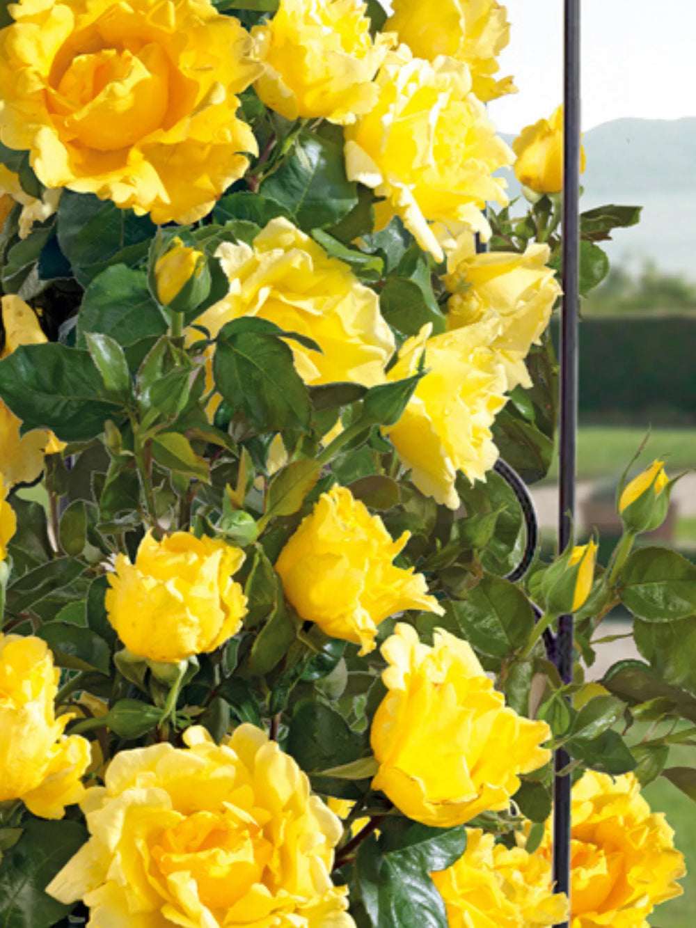 Originar din Europa, acest trandafir este apreciat pentru culoarea sa vibranta si rezistenta la boli. Este perfect pentru a crea un punct focal in gradina sau pentru a adauga o nota romantica unui pergola.